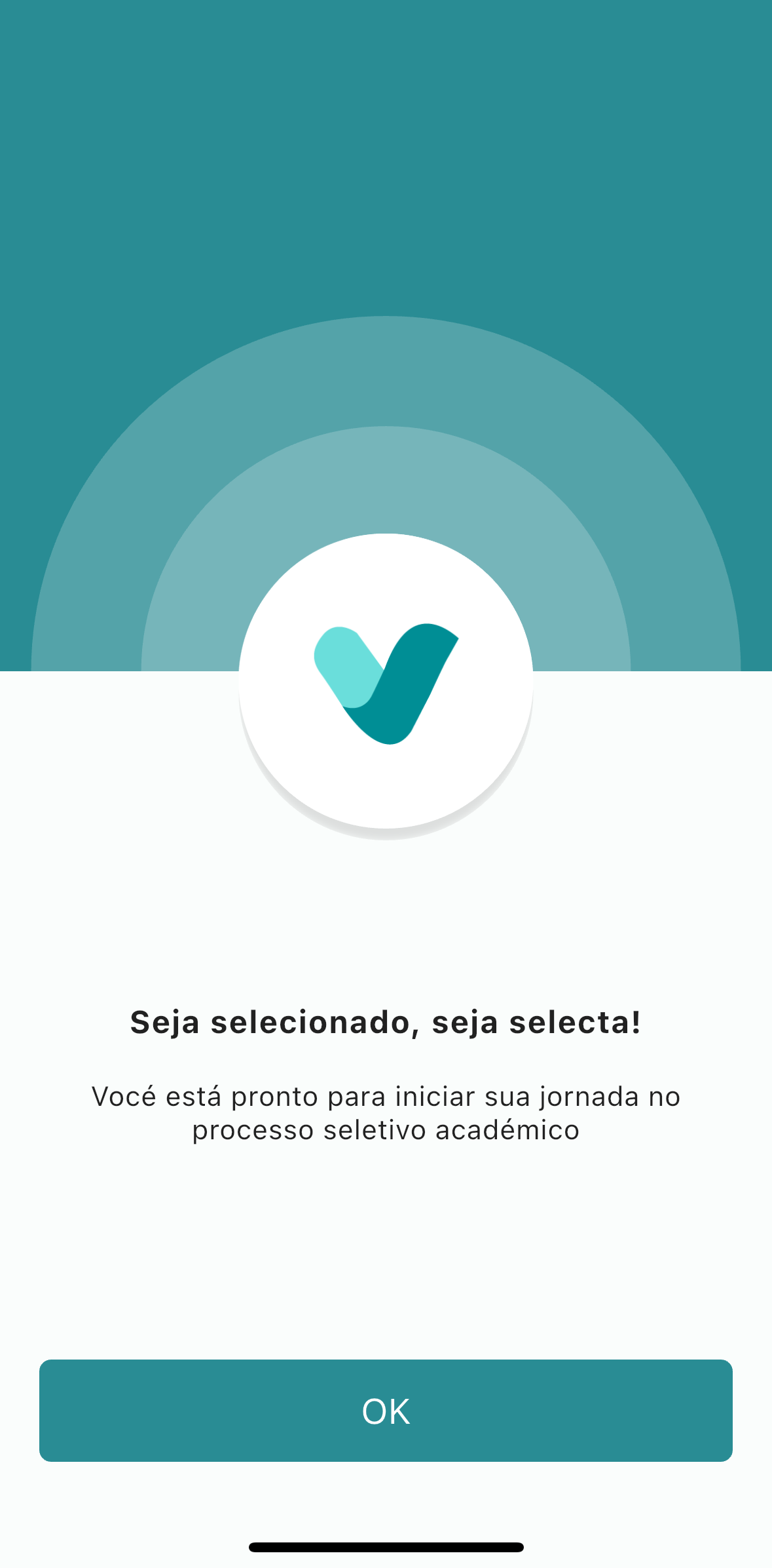 Uma nova tela será exibida confirmando o sucesso do seu cadastro. Clique em OK para continuar navegando no app.